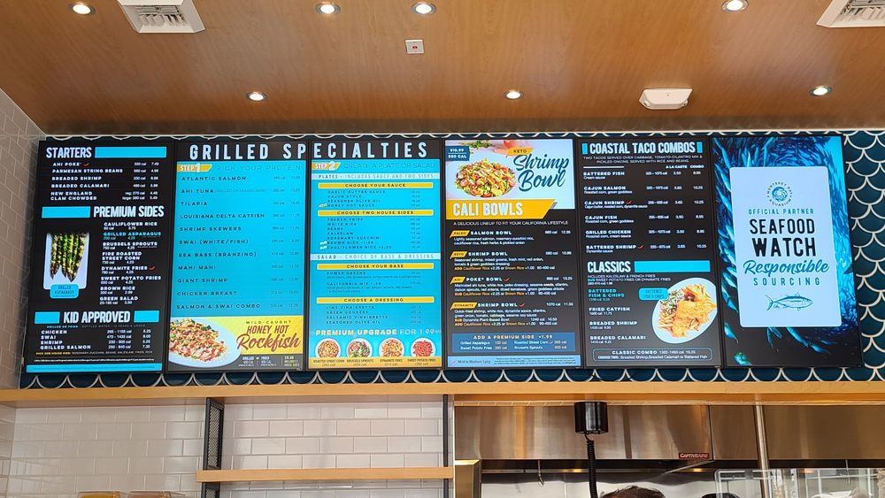 The welcoming atmosphere is further enhanced by exceptional customer service making each visit a memorable experience. Whether dining in or taking out, California Fish Grill is sure to satisfy your seafood cravings!